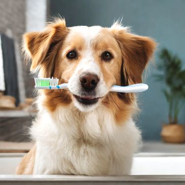 I provide ultrasonic teeth cleaning for your dog. It is safe, motionless and gentle without the need of anaesthesia.